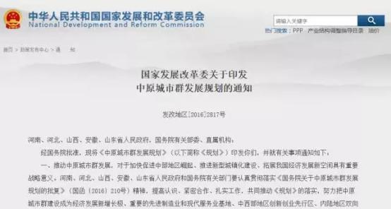 2017年1月5日,國家發(fā)改委印發(fā)通知,明確了中原城市群發(fā)展規(guī)劃的重大工程項(xiàng)目。項(xiàng)目以“鐵公基”為主,在未來5年內(nèi)逐漸開工。隨著這些基建工程的鋪開,沿線城市群的城區(qū)改造、商品房建設(shè)工程,自然是水漲船高的。